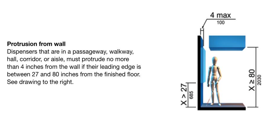 Also to make enough space for critizens in wheel, ADA require bathroom accessories
