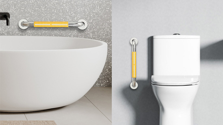 以坐便器旁的U型扶手为例,其为不同身体状况的使用者移乘至坐便器时所需的空间提供了灵活性。当使用者采取站立移乘,或需起身时,该扶手可起到支撑作用。