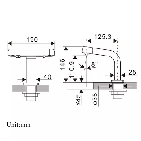 3.Laser sensor: can avoid mis-operation caused by reflection of basin