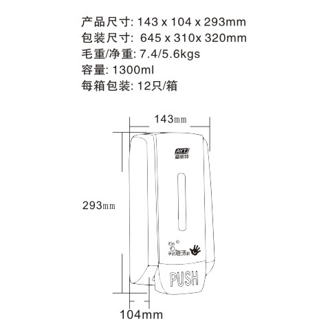 | Manual soap dispenser shell only | 1300ml | 0.5-0.8 | 50k | 143*104*293 | 67*31*32 | 12 | 9.52 | 7.68 |