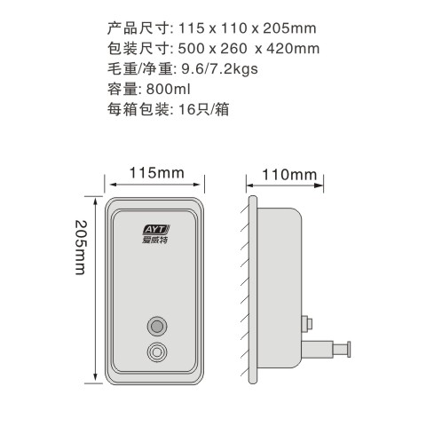 肘压喷雾皂液器 AYT-736